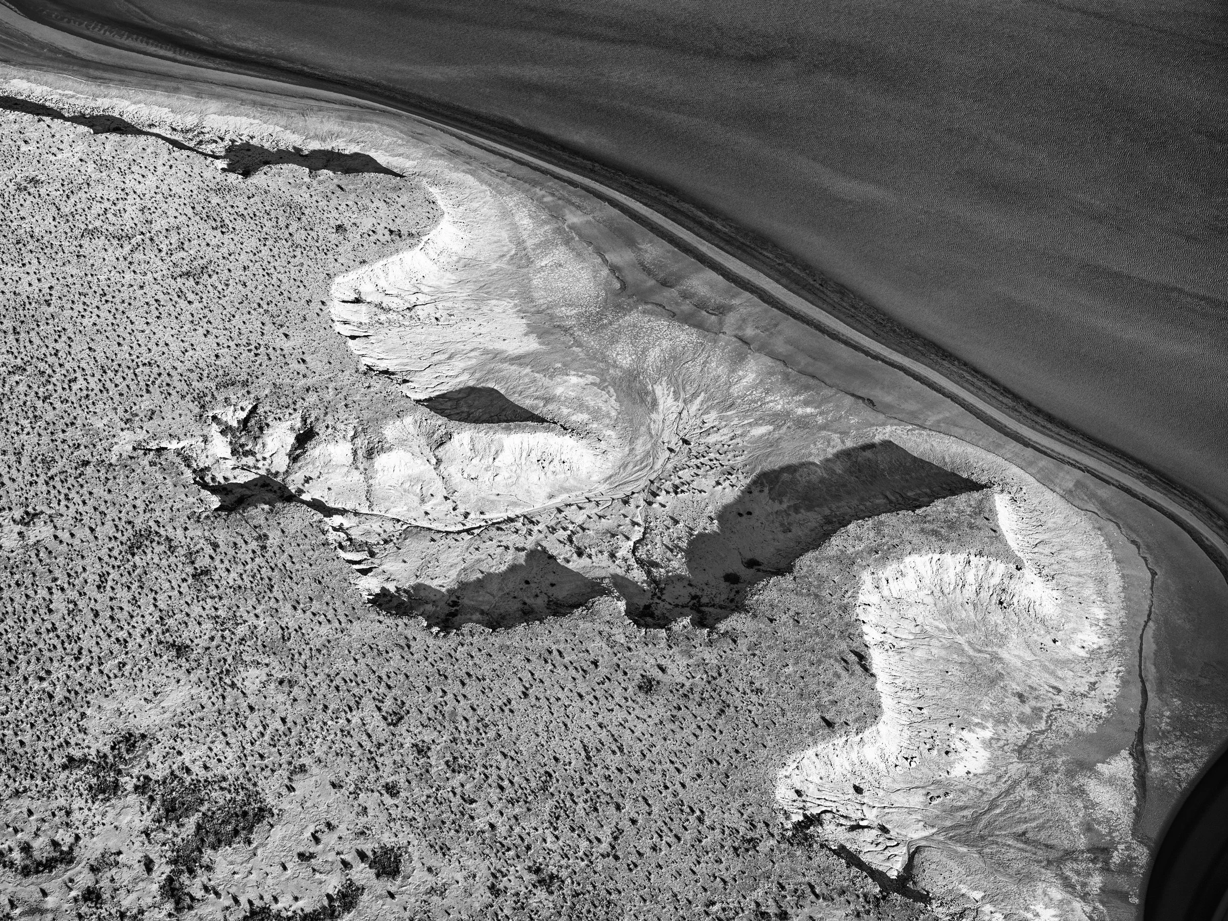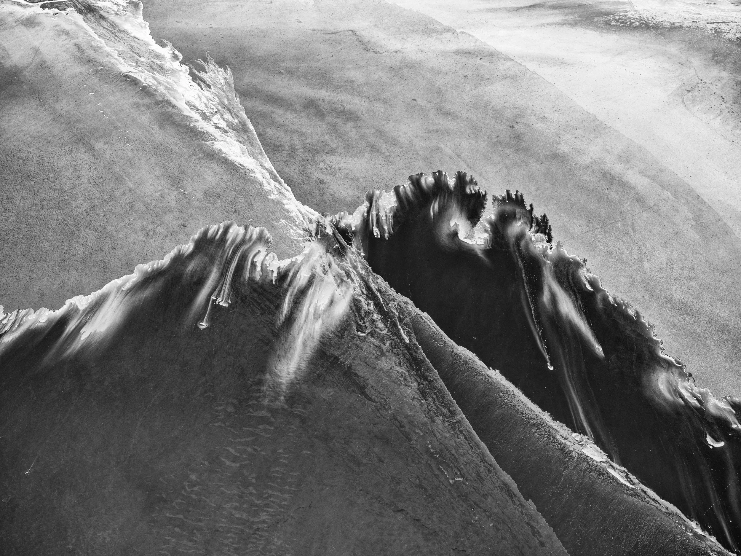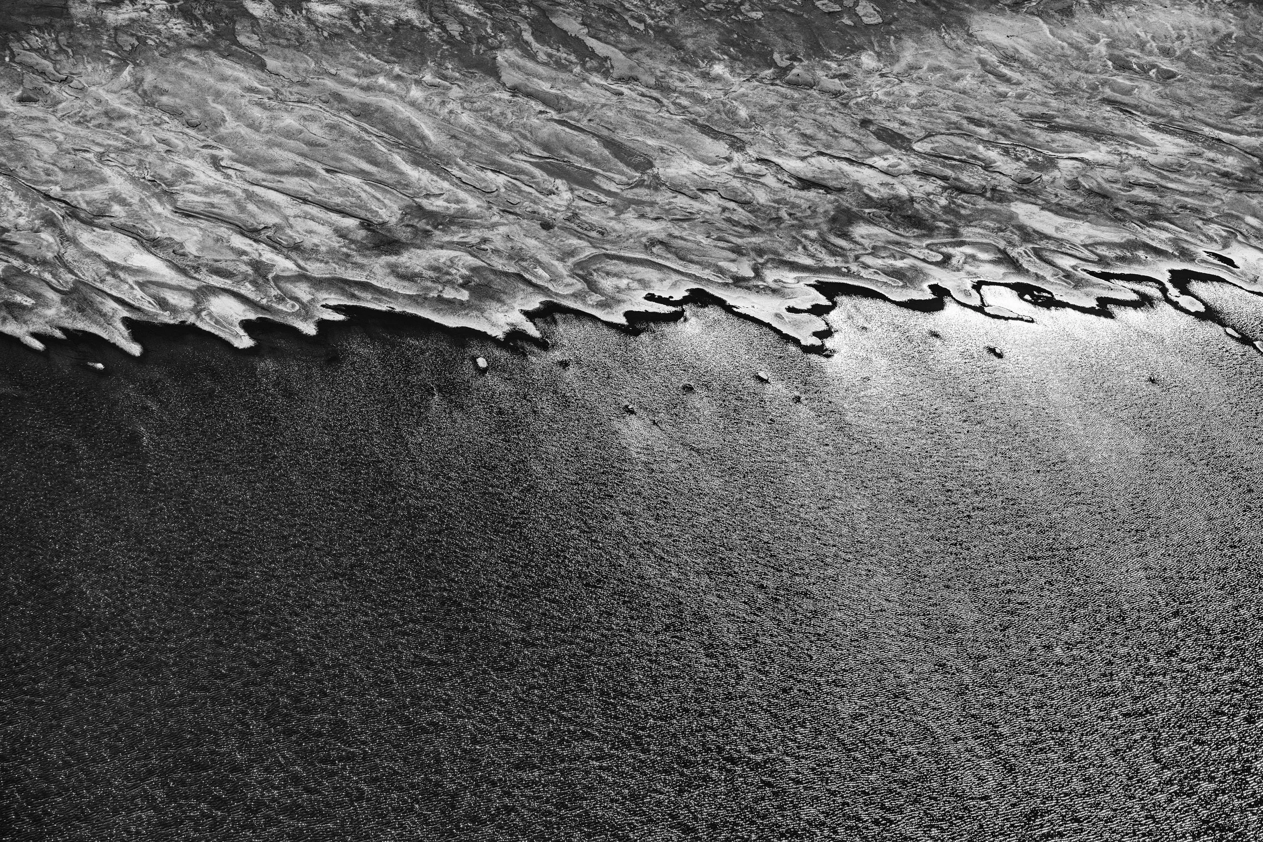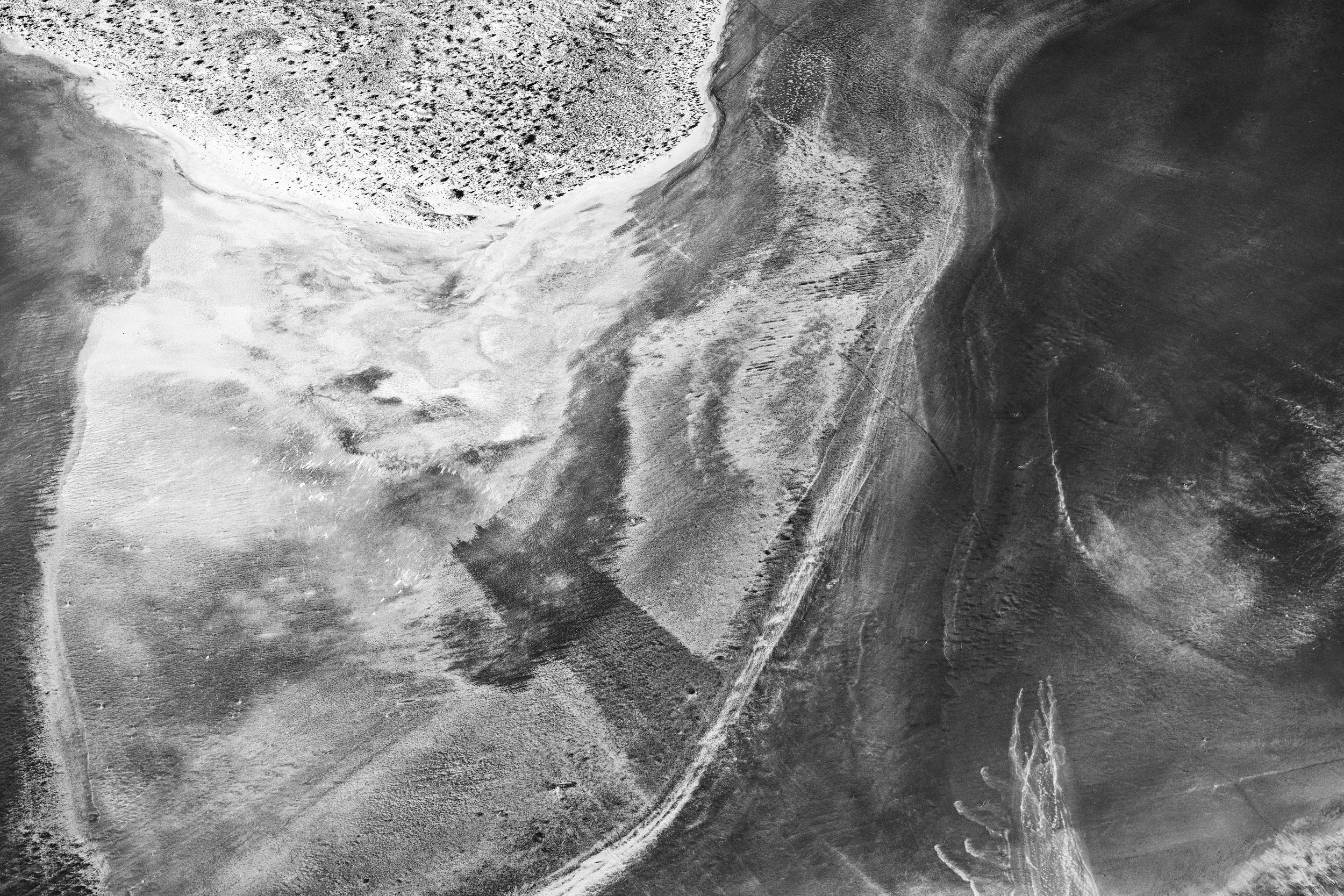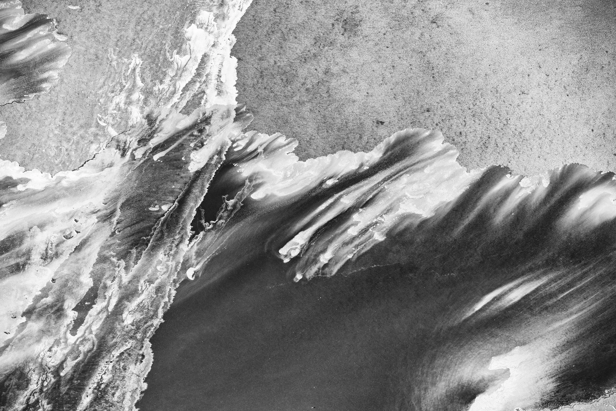 From the sky, salt and water merge into the ghost of a breaking wave — an abstract monochrome seascape painted across Kati Thanda–Lake Eyre’s endless canvas.